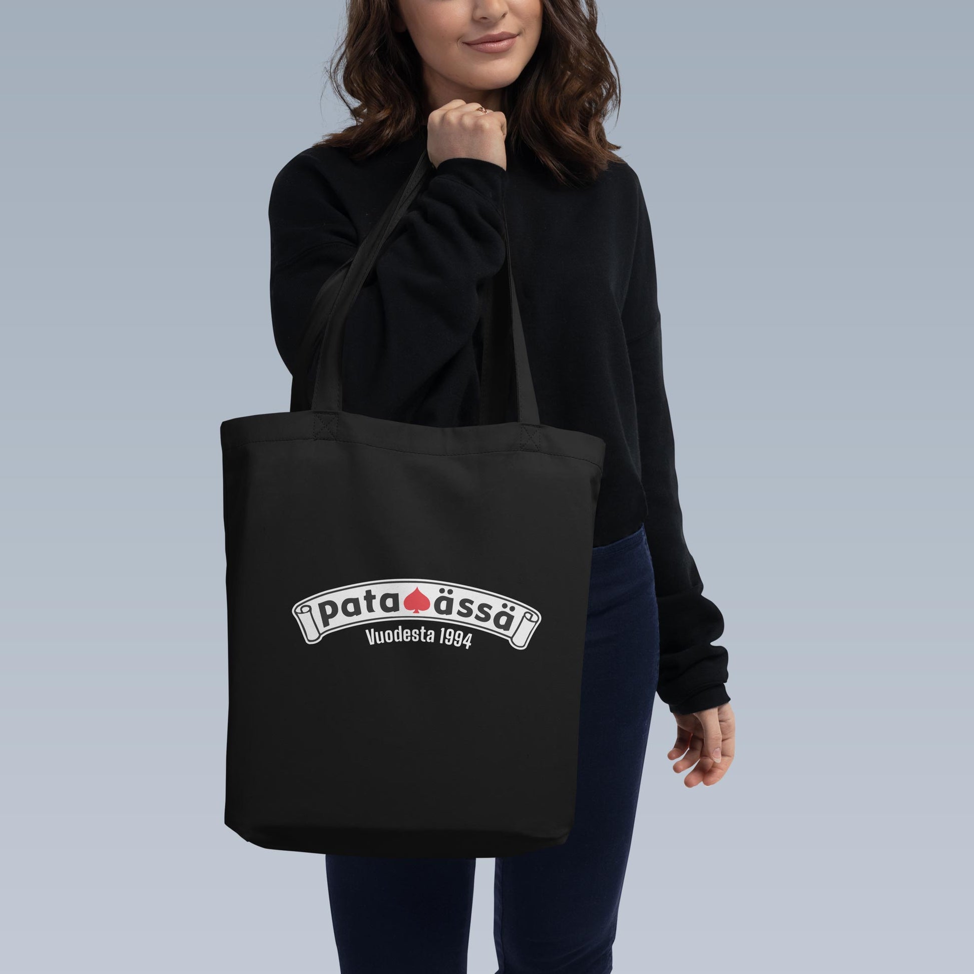 Käytännöllinen ja kestävä Pataässä-kangaskassi on täydellinen arjen kumppani. Musta kangaskassi ikonisen Pataässä-logon kera ei pelkästään näytä hyvältä, vaan myös auttaa sinua vähentämään muovikassien käyttöä. Kestokassin avulla säästät luontoa ja otat askeleen kohti ekologisempaa elämäntapaa. Sopii ostoksille tai vapaa-aikaan.