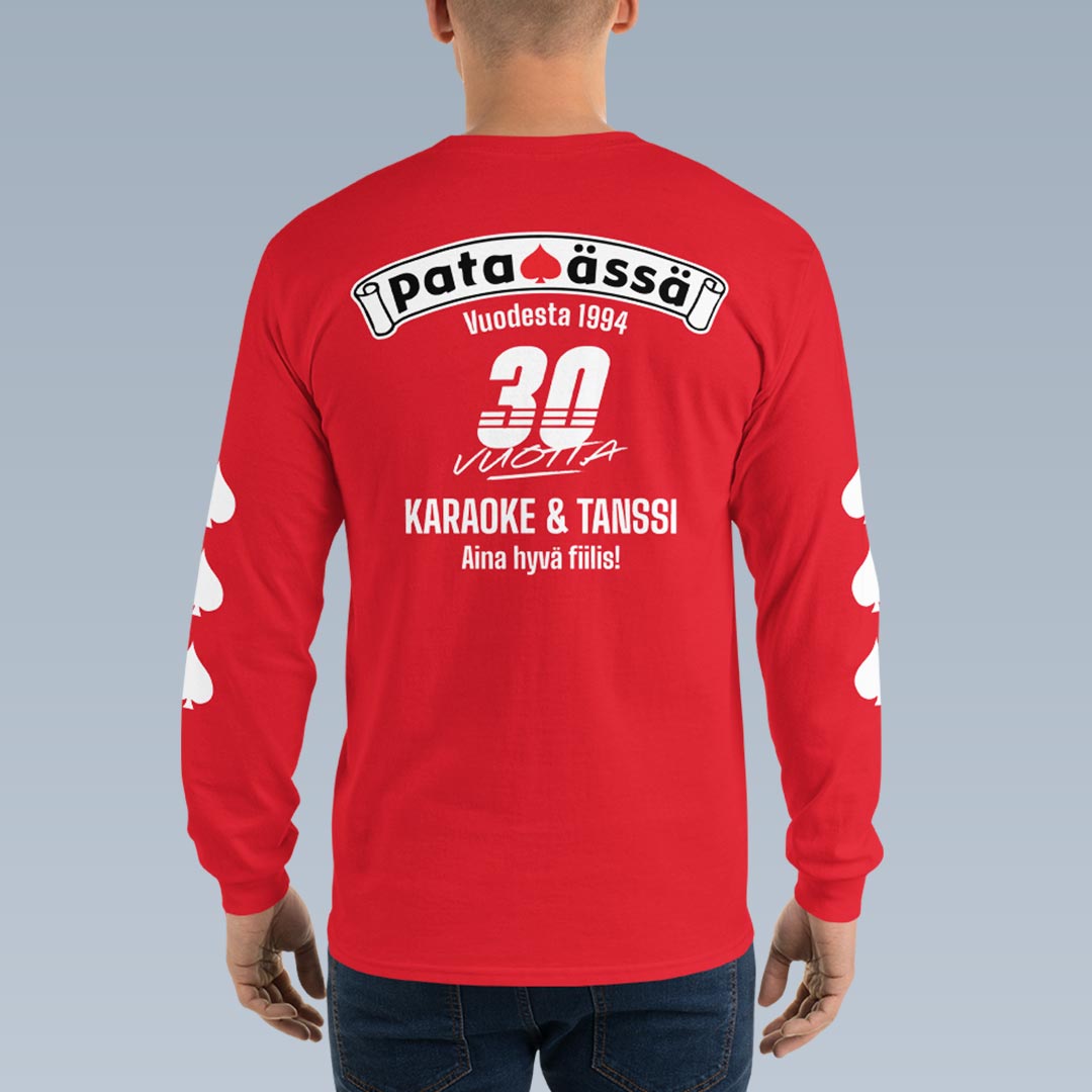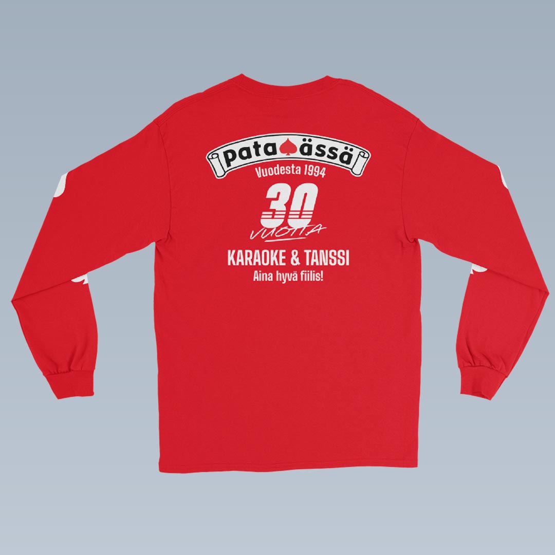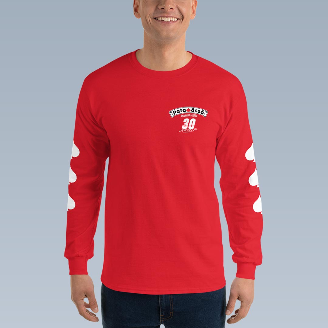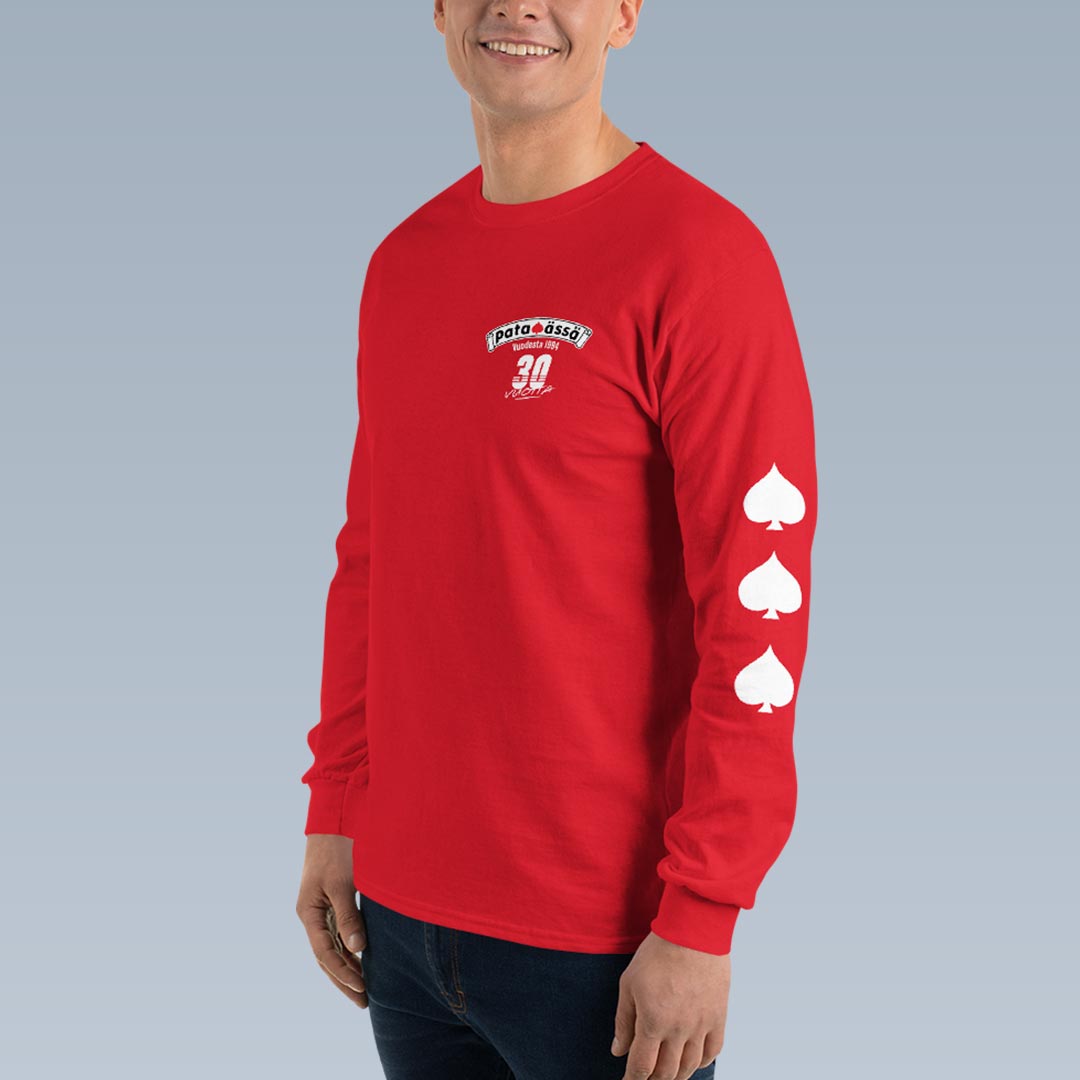 Tämä pitkähihainen paita on osa Pataässän 30-vuotisjuhlavuoden keräilymallistoa, ja se on saatavilla vain rajoitetun ajan. Valittavana on kaksi klassista väriä – punainen ja musta. Tämä vaatekaapin klassikko on täydellinen lisä rentoon tyyliin.