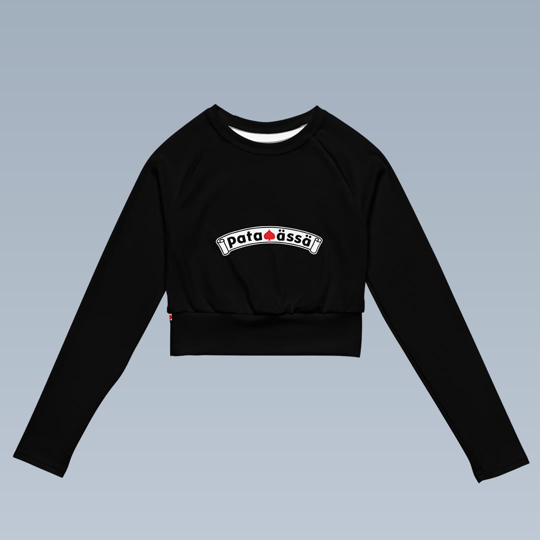 Tämä pitkähihainen crop-toppi on valmistettu kierrätetystä polyesteristä ja elastaanista, joten se on ympäristöystävällinen valinta uimiseen, urheiluun tai rentoihin asuihin. Topissa on irrotettava hoito-ohjelappu ja leveä, kaksikerroksinen vyötärönauha, joka takaa mukavan istuvuuden.
