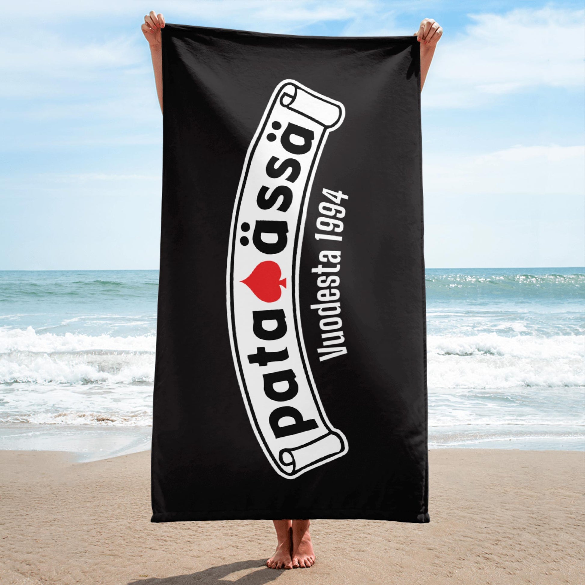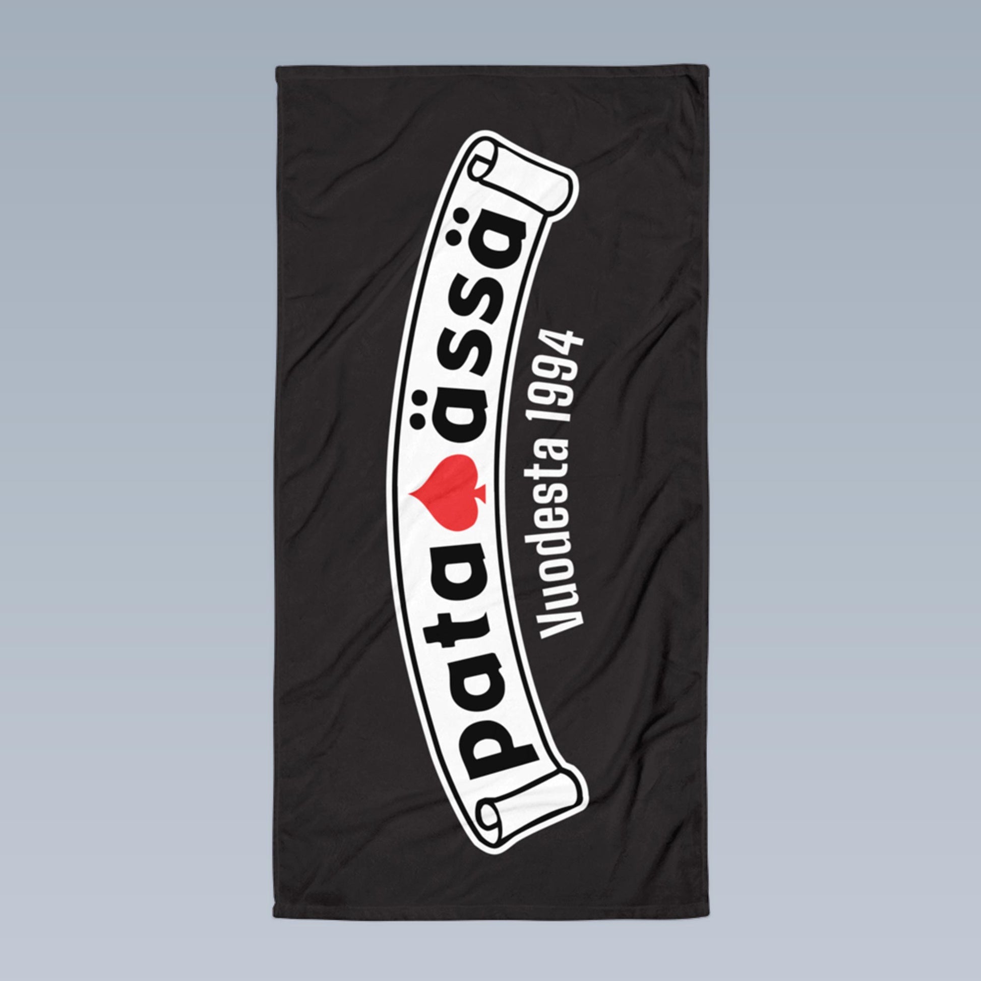 Tämä laadukas sublimointipyyhe sopii kaikkiin tilanteisiin – rannalle, kotiin tai saunaan. Suurella koollaan 76,2 cm x 152,4 cm pyyhe tarjoaa runsaasti tilaa mukavaan käyttöön. Mustalla pohjalla oleva Pataässä-logo tuo tyyliä ja persoonallisuutta jokaiseen käyttöhetkeen.