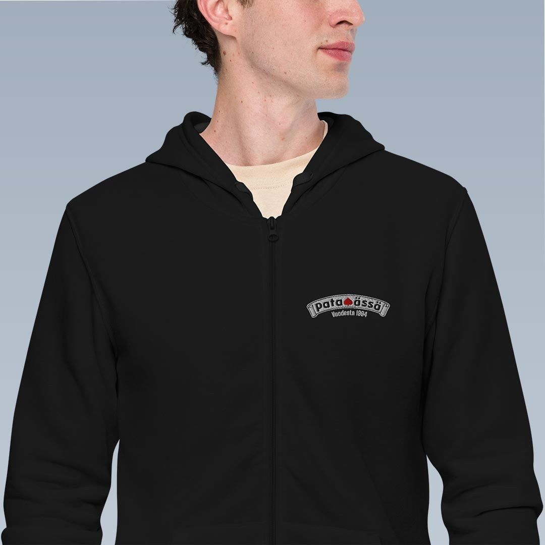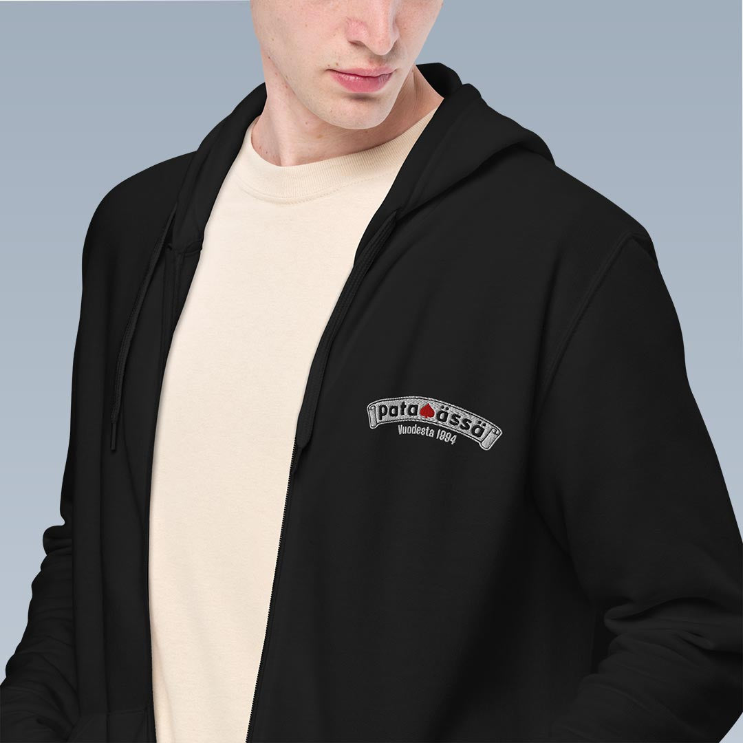 Tämä mukava ja monikäyttöinen vetoketjullinen huppari on täydellinen lisä arkiseen tyyliin. Pehmeä harjattu fleecevuori, huppu yhteensopivilla kiristysnauhoilla ja kaksi käytännöllistä kengurutaskua tekevät tästä hupparista vaatekaappisi suosikin. Logo on toteutettu brodeerauksella, mikä takaa sen kestävyyden ja värien säilymisen pitkään.