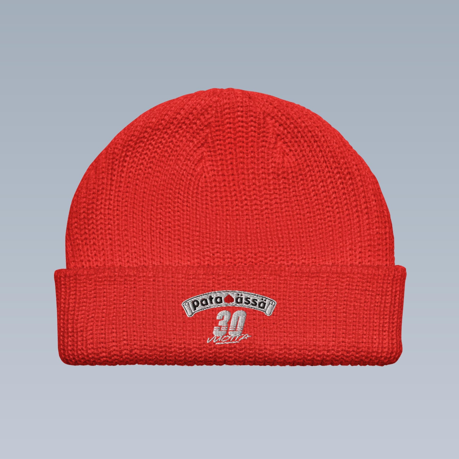 Juhlista Pataässän 30-vuotista taivalta tyylillä tällä ainutlaatuisella juhlavuoden pipolla! Paksu ja ribattu neulos pitää pään lämpimänä kylmällä säällä, ja ajaton fisherman-tyyli sopii täydellisesti lähes kaikkiin asukokonaisuuksiin. Tämä erikoismallisto on osa Pataässän 30-juhlavuoden keräilytuotteita, joten varmista omasi ennen kuin ne loppuvat!