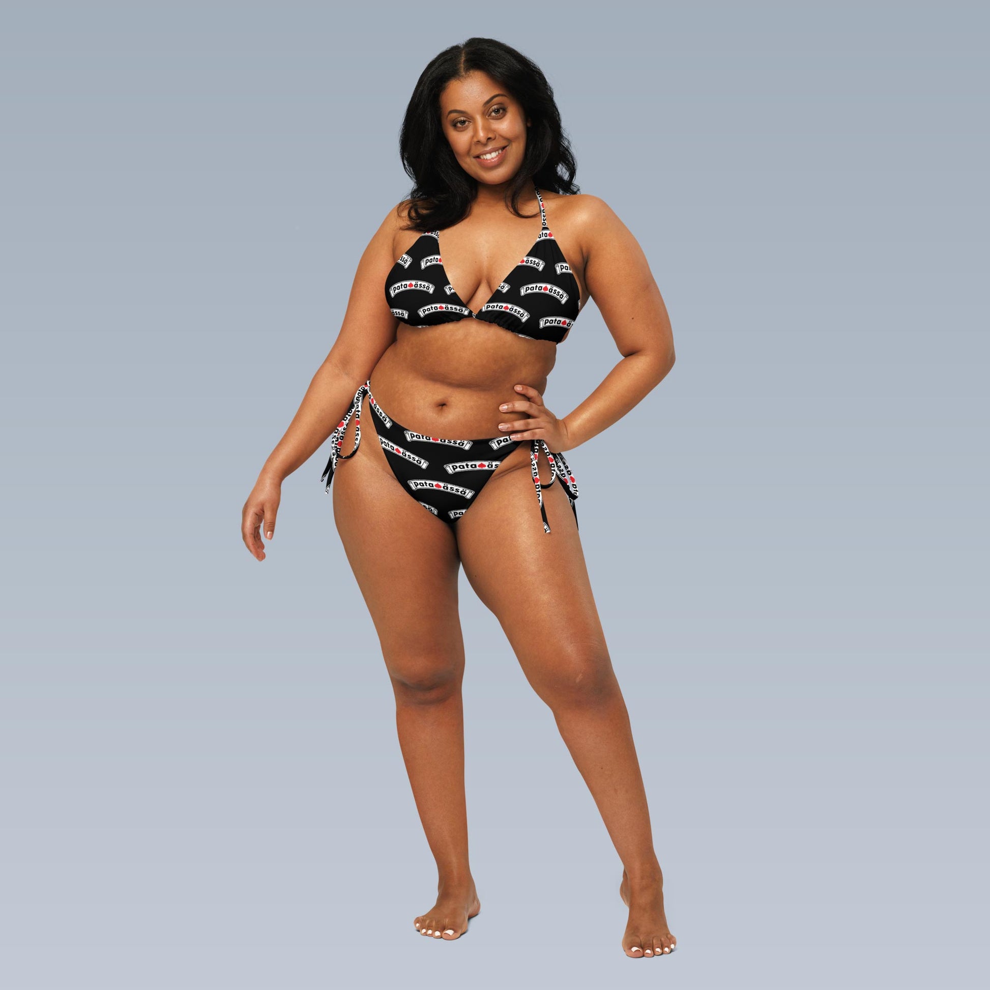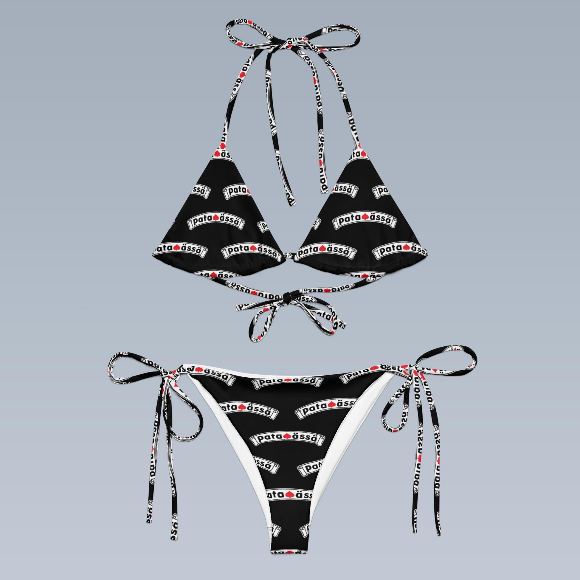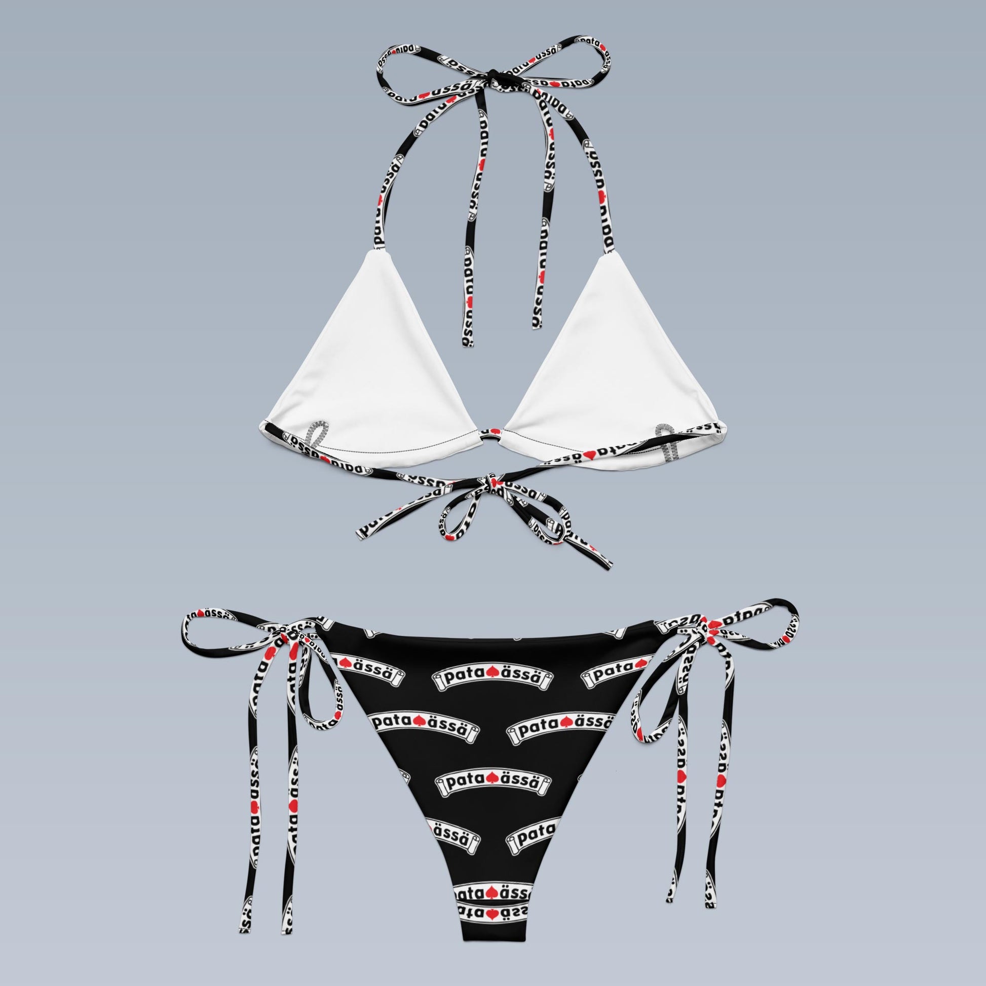 Yhdistä hauska tyyli ja vastuullisuus Pataässä-bikineillä! Pehmeä ja joustava kaksikerroksinen kangas UPF 50+ -aurinkosuojalla pitää huolen ihostasi ja takaa miellyttävän istuvuuden. Säädettävät nauhat tarjoavat loputtomat mahdollisuudet stailata bikinit juuri sinun tyyliisi – täydellinen valinta niin rannalle kuin uimareissuille!